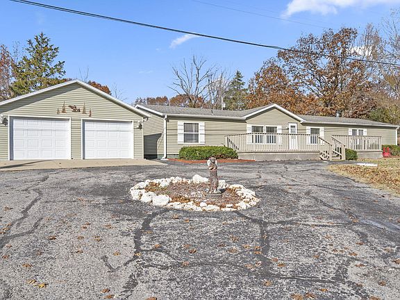 An inviting asphalt driveway leads to this well kept 4-bedroom, 2-bath home on a spacious 0.72 +/- acre lot just a short drive to Table Rock Lake. A two car detached garage and a generous front deck welcome you inside where the living room flows seamlessly into the dining area and kitchen. The kitchen offers abundant cabinet space and opens to a charming hearth room featuring a cozy fireplace and built in cabinets. The large primary bedroom includes an ensuite bath with a soaking tub while three additional bedrooms share a full hall bathroom. Enjoy peaceful outdoor living with a second deck that overlooks the deep backyard offering plenty of room to spread out. With comfortable indoor space and an excellent location near the lake this home provides an affordable opportunity to enjoy lake area living with the convenience of four bedrooms.