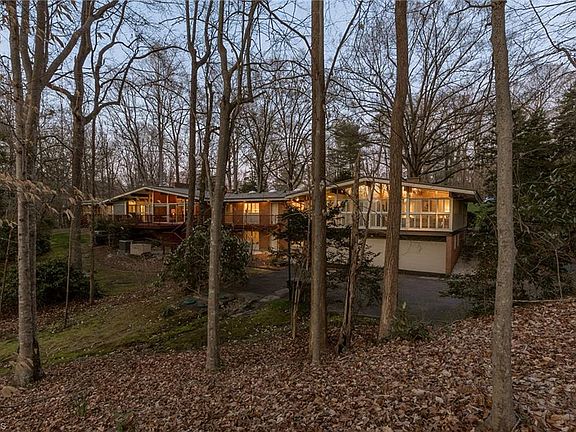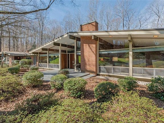 This 5BR, 4.5BA Mid-Century Modern Masterpiece is pure joy. Tennis Court, Elevator, 9.63 Acres! Extremely private! Designed by well-known Architects “Voorhees & Everhart.” The schedule of wood finishes for the interior include White Pine, Yellow Pine, Fir, Oak, Walnut, Maple & Cypress. One loving Owner! Handsome vaulted ceilings trimmed out w/wooden beams accentuate the rooms & shine throughout the home. Massive rooms, tastefully planned, in immaculate condition. Contemporary feel. Two homes literally join here. Basement garage has small office & full bath. Generous storage. Natural light floods the large windows & skylights around the home. Idyllic view from every angle to satisfy any naturalist. Escape to the mountain scenery but in your own backyard. The brook trickles along with a series of calming little waterfalls. Picturesque is an understatement. Transform the Tennis Court for Pickleball. A real showstopper, parties would be memorable! Relax & enjoy the intoxicating scenery!