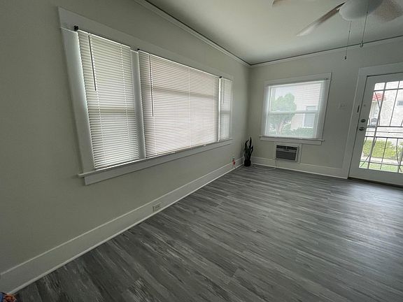 Great looking bright and airy End Unit. 1 Bedroom/ 1 Bath. Freshly painted. New flooring. New stainless steel appliances and sink. Walk-in closet. Huge windows letting light shine in. Alley access. Ceiling fans in living room and bedroom. AC unit in living room. Complex has only 12 apartments. Shared Coin or credit card operated Washers and Dryers in community w/d room at end of building. Street parking. Do not submit application without seeing property with property manager first. Please call, text or email to make an appointment. Owner pays water and trash. Tenant pays electric and gas. No smoking. Street parking