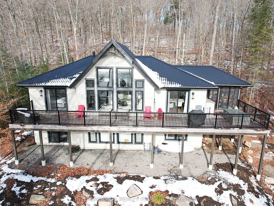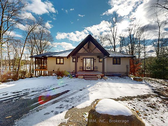 Have you ever wondered what it would feel like to win the lottery? Now is your chance! This stunning, custom-built four-season Linwood Homes cottage was the 2023 Princess Margaret Lottery Grand Prize, with a retail value of $2.5 million! This 3 Bed/3 Bath Cottage checks all the boxes. South exposure that offers all day sunshine and a multi Million dollar view .Step inside to a beautifully furnished interior, professionally designed from top to bottom. The open-concept layout features cathedral and vaulted ceilings, hardwood floors throughout, and a breathtaking floor-to-ceiling stone fireplace-perfect for cozy winter nights. A spacious screened-in porch leads to a wraparound deck, ideal for morning coffees, evening cocktails, or family game nights The lower level has an amazing games room and a projection screen that will make watching movies or the big game epic. The walk out leads to the lake that features a fire pit, Dock and level lawn. The clear, sparkling waters of Ril Lake are calling. Come experience the cottage lifestyle you've been dreaming of.