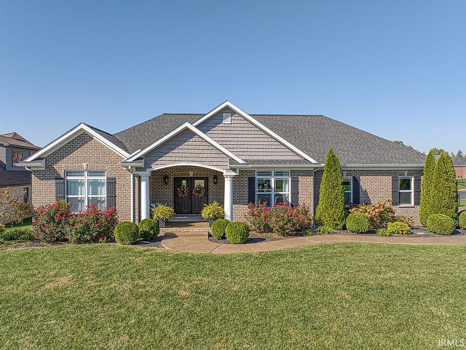 Welcome to this stunning craftsman-style brick ranch, where modern elegance meets timeless charm. Custom built by Mattingly Homes, it is nestled on a spacious lakefront lot, and offers the perfect blend of comfort and luxury, ideal for both relaxation and entertaining. The heart of the home is its expansive open floor plan, seamlessly connecting the living, dining, and kitchen areas. The huge kitchen island is a standout feature, offering abundant granite counter space for meal prep and casual dining. The surrounding area is designed for both function and style, with a spacious pantry and easy access to the dining area. The primary bedroom features a large tile shower, two separate vanities, and a water closet. The other two bedrooms share a Jack & Jill bath. Each room is thoughtfully laid out with large windows, allowing for plenty of natural light. The basement features a fourth bedroom, full bath and lounge room. The expansive unfinished part of the basement offers endless possibilities for customization, whether you envision a cozy family retreat or a vibrant entertainment hub.