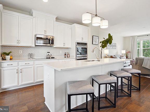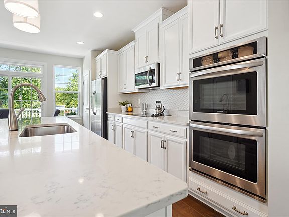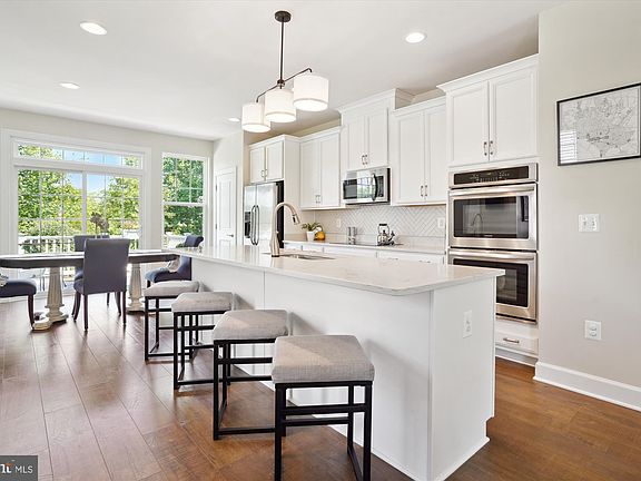 Welcome to this beautiful, 3 level, end unit townhome available in the sought after Bradley Square neighborhood. Built in 2018 by Stanley Martin, this large Buckley model is "like new" in so many ways with fresh paint throughout and upgraded appliances. As you walk through the door you will be greeted by a light filled, front-to-back open concept living space, boasting high ceilings and recessed lighting. The main floor is centered around a gourmet kitchen with stainless steel appliances, sleek neutral cabinets, granite countertops, beautiful herringbone backsplash and a huge island perfect for culinary enthusiasts and entertaining. This home backs to tall trees and and peak a boo views of the pond, providing a serene and private setting while you relax on the large deck. Upstairs, discover a luxurious primary bedroom with a walk-in closet, accompanied by two additional bedrooms, each featuring ceiling fans. For added convenience, a washer and dryer are nestled between the bedrooms. The finished lower level boasts a generous, adaptable space, ideal for creating an additional living area, a home gym, or office space. Complete with a full bath and a walk-out patio, this area offers endless possibilities for relaxation and entertainment. The neighborhood offers several tot lots, splash pad during the summer and a nature walking trail and is conveniently located near downtown Historic Manassas with many options of excellent restaurants, shopping and activities – summer music in the Harris pavilion, weekly farmers market and monthly First Friday. Commuting is a breeze with easy access to the Virginia Railway Express and nearby thoroughfares: Route 234, 28 and I66. Nest doorbell, nest thermostat, outdoor storage shed and lower level Murphy bed with builtin storage shelves all convey. Ask your agent for the link to our interactive floor plan.