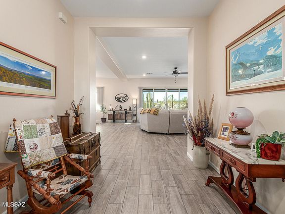 Dreaming of mountain views, privacy, and a nearly new home in a gated community? This Lennar-built beauty in the Preserve at Twin Peaks delivers all of that--and more. Set on a private 0.24-acre lot with no rear neighbors, this 4-bedroom, 3-bath home offers peaceful desert living with modern style and over $90,000 in thoughtful upgrades. Inside, the bright and open great room welcomes you with high ceilings and a dramatic center-pull sliding glass door framing desert views. The gourmet kitchen is designed for both everyday living and entertaining, featuring granite countertops, upgraded cabinetry, stainless steel appliances, a large pantry, and an oversized island that brings everyone together. The owner's suite is a true retreat with patio access, two walk-in closets, and a luxury bath complete with a custom walk-in shower and dual vanities. Bedrooms 2, 3, and 4 are privately tucked away and share a full hall bathideal for family, guests, or a home office setup. Upgrades include sun control shades, whole-house water filtration, security cameras, super-sized garage, and designer finishes throughout. Step outside to your newly enhanced backyard oasis with lush turf, pavers, a covered patio, raised garden beds on drip, and panoramic views of the desert and mountains. It's the perfect setting for entertaining, relaxing, or simply enjoying Tucson's endless blue skies.