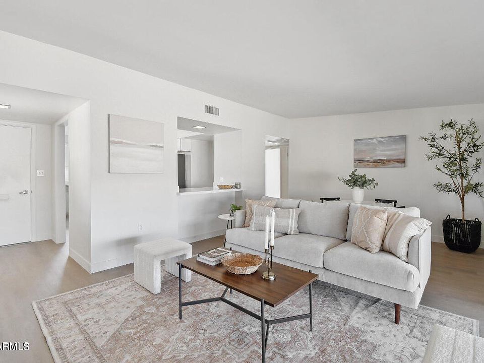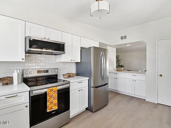 Discover this stunning, fully remodeled townhouse in the heart of Sun City! This charming home features 2 bedrooms and 2 bathrooms with an open floor plan that seamlessly blends style and functionality. The kitchen has been completely updated with soft-close shaker cabinets, sleek quartz countertops, and stainless steel appliances. Newer windows throughout. Perfect for any home chef. The entire home boasts upgraded vinyl flooring and new 5-inch baseboards, adding a fresh, modern touch throughout. Enjoy the expanded Arizona room, offering built-in extra square footage for added comfort and versatility. Step outside to a private patio and take advantage of the outdoor storage shed for all your organizational needs. Located in the desirable Sun City community, this home is move-in ready.