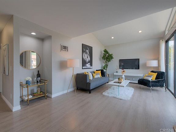 Popular and trendy Westside Village location. Rare offering in small 11 unit complex on quiet street.--Exterior has been upgraded to a Modern smooth stucco finish w/ environment friendly landscaping. HUGE chic one bedroom unit--nearly 850 sq ft! This light & bright top front facing unit shares only one common wall has been upgraded & remodeled throughout. Kitchen features laminate floors, white wood cabinetry, quartz counters, subway tiled backsplash & SS appliances. Enjoy Tree top & Sunset views from the spacious Living room & Dining area. Living room has recessed lighting, laminate floors, vaulted ceilings, fireplace & access to front balcony. Dining area w/ laminate floors & new light fixture. Bathroom with skylight has been remodeled with dual sink vanity, large soaking tub w/ shower & new fixtures. This unit has AMAZING storage with ample closet space in the unit. Stable HOA w/ low monthly dues cover water, trash, landscaping & insurance. Secured Entry with gated underground Parking. Quiet neighborhood & super convenient to shops, restaurants, UCLA, Culver City & Freeway.