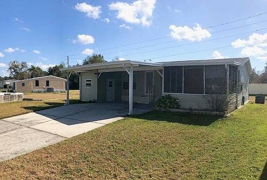 THIS SPACIOUS JACOBSEN, 2 BEDROOM, 2 BATH HOME HAS A DEN THAT COULD BE MADE INTO A 3RD BEDROOM. THE LOCATION IS EXTREMELY PRIVATE AND QUIET! THE 55-PLUS COMMUNITY HAS NO THROUGH ROADS. THIS HOME IS LOCATED IN THE REAR PORTION OF THE PARK AND IS SET BACK ON THE EXTRA LARGE LOT, MAKING IT AN IDEAL HOME TO RELAX AND ENJOY THE FLORIDA LIFESTYLE! The floor plan is great for entertaining with a large living space and a separate suite for guests. The home features laminate and tile floors in the main portions of the home, with carpet in the two bedrooms. Awnings were installed on all exterior windows for added safety during storms etc. A security system is available for added piece of mind while away from home. The community provides water/sewer, full lawn service, garbage pick up twice a week. Caribbean Estates offers boat/RV storage (see park management for details) and has a clubhouse and heated pool for year-round swimming. The residents are awesome and make for great neighbors! All listing information is deemed reliable but not guaranteed and should be verified through personal inspection or by appropriate professionals. The buyer assumes full responsibility for obtaining all current rates of lot rent (currently $750 for the lot). Additionally, the buyer is responsible for obtaining all rules, regulations, pet policies, etc., associated with the community, park, or home from the community/park manager. Contact listing agent for your showing today!
