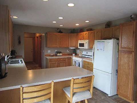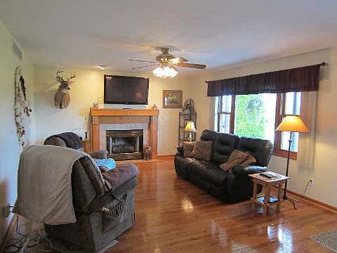 Immaculate and very well thought Ranch style home on 7 acres in Freeland. 4 bedrooms 2.5 bathrooms . Main bath was recently updated with tile shower . Hardwood floors in living room and all bedrooms .Big open kitchen with breakfast bar and Anderson door out to patio. Master bedroom has 2 closets and private bath. Huge finished basement with another kitchen and family room. Other features include 50x80 pole building with an office and full bathroom. Geo thermo heating and cooling. This home is move - in cond