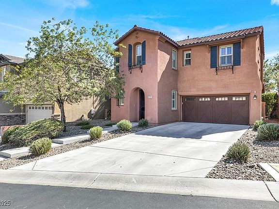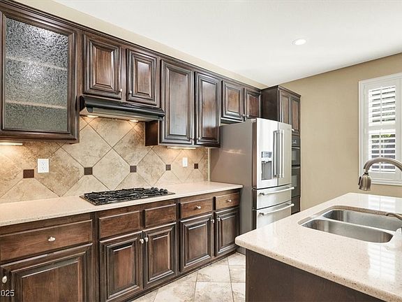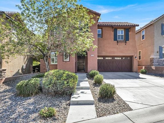 This stunning 2-story home showcases luxurious upgrades throughout and a spacious, open floor plan. Enjoy tile flooring on the entire first floor and all wet areas, along with a gourmet kitchen featuring a matching tile backsplash, custom cabinets, center island with breakfast bar, and a bright dining area with French doors leading to your covered patio and professionally landscaped backyard perfect for entertaining! Upstairs, you’ll find a generous primary suite with a walk-in closet, garden tub, separate shower, and dual vanity. Additional highlights include a large loft/family room and plenty of natural light throughout. Conveniently located near parks, trails, and top-rated schools in one of Northwest Las Vegas’ most desirable communities. Don’t miss this one!