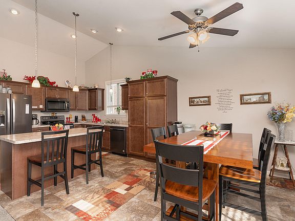 Incredible one level living on end of cul-de-sac gorgeous lot, with amazing finished lower level. This three bed three bath home is loaded with beauty. Walk out from your dining area and enjoy your coffee on the large deck. With the cathedral ceilings it allows that open and airy feeling while preparing your holiday meals. Large island for prepping, gathering or serving makes it a breeze in this large open kitchen. The primary suite offers plenty of space with large double bowl vanity, walk in shower. Two other nice sized bedrooms make this move-in home perfect!!