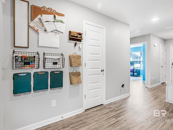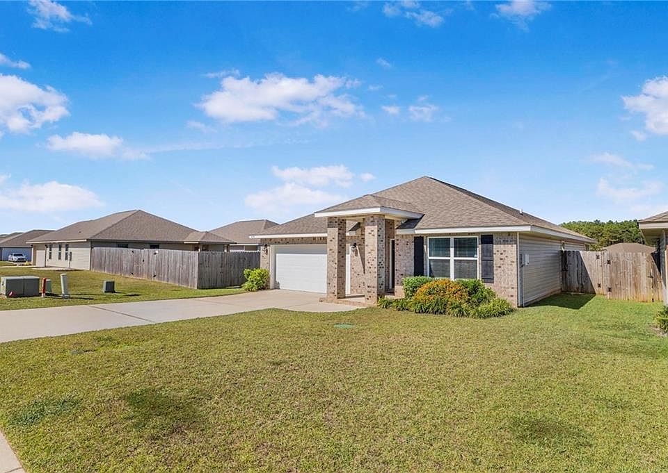 Enjoy the best of both worlds! Peaceful living with easy access to city conveniences. This beautifully designed 4-bedroom, 2-bath home offers modern style, smart technology, and a welcoming community setting. As you enter, you're greeted by a striking accent wall that combines organization and design, providing built-in storage and a touch of character right at the door. The open floor plan connects the living, dining, and kitchen areas, creating a bright, inviting atmosphere with plenty of room to live and gather.The kitchen features stormy Gray soft-close cabinets, granite countertops, stainless steel Frigidaire appliances, and a large island for additional prep and serving space. Luxury vinyl plank flooring throughout the home. Outside, enjoy the covered back porch for quiet mornings or unwinding in the evening. The two-car garage provides plenty of room for vehicles, bikes, tools, and recreational gear. This SMART HOME system offers convenience and control with app and voice-activated features for locks, lighting, and thermostat adjustments. Located in Outer West Mobile, this growing community includes a pool and clubhouse, providing areas to unwind and connect. Just a short drive from Mobile, you'll love the quiet setting paired with nearby restaurants, gas stations, and other everyday conveniences. Built to Gold FORTIFIED standards for added safety and potential insurance savings, and USDA loan eligible, this home offers both quality and value. Experience modern comfort, convenience, and community all in one thoughtfully designed home. Buyer to verify all items during due diligence. Buyer to verify all information during due diligence.