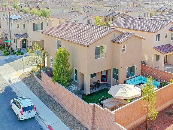 This two-story home in the Monterey Ranch neighborhood of Mountain’s Edge offers 3 bedrooms, 2.5 baths, and 1,700 square feet of thoughtfully designed living space. The main level features an open layout that connects the kitchen, dining, and living areas for easy everyday use. The kitchen is equipped with stainless steel appliances, granite countertops, espresso cabinetry, and a walk-in pantry. Upstairs, the primary suite includes a private bath and walk-in closet, with two additional bedrooms and a loft. The backyard has been finished with a built-in fireplace and barbecue area, creating a comfortable outdoor extension of the home. Located within a gated community, residents also have access to a pool, splash pad, barbecue area, and shared green spaces.