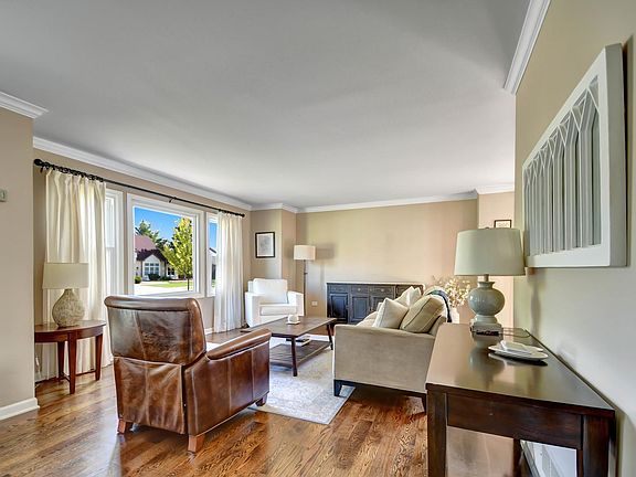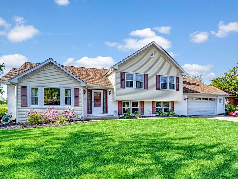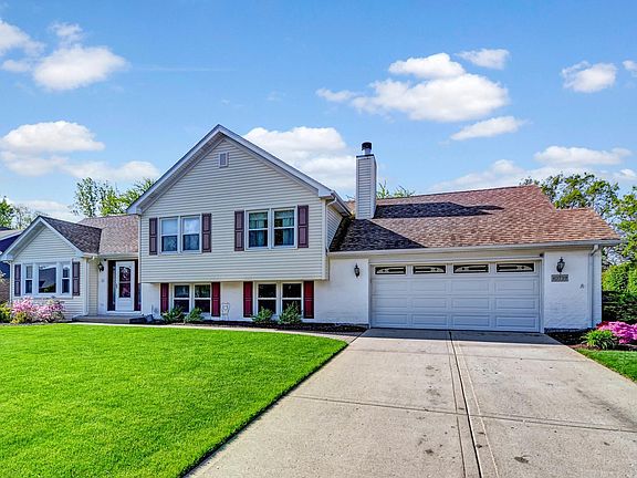 SUPERLATIVES ABOUND WHEN DESCRIBING THIS COMPLETELY UPDATED QUAD LEVEL STRETCHING OVER METICULOUSLY LANDSCAPED 0.3 ACRE LOT IN POPULAR BARRINGTON SQUARE SUBDIVISION. CAPTIVATING CURB APPEAL, NEWER PAVER WALKWAY LEADING TO NEWER FRONT DOOR THAT OPENS INTO INVITING L-SHAPED LIVING/DINING ROOM COMBO WITH CLASSIC CROWN MOLDING & BEAUTIFUL DARK WALNUT FINISH HARDWOOD FLOORING. BRIGHT UPDATED EAT-IN KITCHEN WITH MODERN WHITE CABINETS, QUARTZ COUNTERTOPS, CERAMIC BACKSPLASH & STAINLESS STEEL APPLIANCES. NEWER ANDERSON SLIDING DOOR THAT OPENS TO NEWER STAMPED CONCRETE PATIO IN LARGE BACK YARD WITH MCGOVNEY PARK IN THE BACK WITH PLAYGROUND LITERALLY WITH HOP-SKIP-N-JUMP AWAY. UPDATED & BEAUTIFULLY APPOINTED CERAMIC TILE BATHROOMS - UPSTAIRS ONE WITH SHARED MASTER BEDROOM ACCESS. LOWER LEVEL WITH LARGE RELAXING FAMILY ROOM WITH ADDED RECESSED LIGHTING, NEWER CARPETING & FIREPLACE. ADJACENT MUD ROOM (COULD BE OFFICE) WITH NEWER FLOORING & DIRECT ACCESS TO ATTACHED GARAGE. NEWER CLASSIC WHITE TRIM & INTERIOR DOORS THROUGHOUT. UNFINISHED SUBBASEMENT IDEAL FOR ALL YOUR STORAGE NEEDS OR POSSIBILITY OF MORE FUTURE LIVING/ENTERTAINING SPACE. ALSO NEWER ROOF, WINDOWS, GUTTERS & SIDING FOR YEARS OF WORRY FREE LIVING & ENJOYMENT. SMART MOVE IS SEEING SOON!