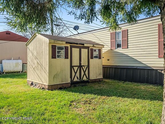The home sits on a rented lot and features public water and public sewer, ensuring low-maintenance living. An additional shed is included for extra storage, making it perfect for tools, outdoor items, or hobby space.
