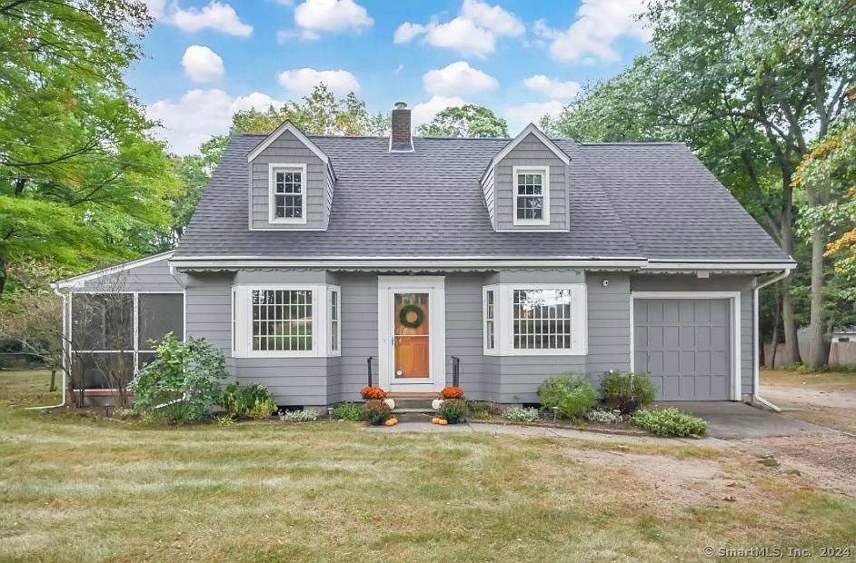 Welcome to 1074 East Street North! A charming Cape with several updates and room to grow in Suffield, CT! This well cared for home sits on close to one acre of land that provides backyard privacy and a welcoming outdoor entertaining space. The main floor showcases a large livingroom with access to a screened in sunporch as well as a spacious kitchen and dining room area. A half bath off the kitchen completes the downstairs. The second floor includes a large primary bedroom with ample closet space as well as two additional bedrooms and an updated full bath. This home features hardwood floors, additional space in the basement perfect for a home gym or office, a one car garage, and several updates including a new roof, gutters, and gutter guards (2018), newly painted exterior (2022), new shed for extra storage (2022), vinyl windows throughout, and New Buderus furnace and Roth oil tank (2022). The home also includes a Fujitsu mini split heating/cooling system. Both the furnace and mini split system have been cleaned and serviced in September 2024, so they're ready to go for the winter months ahead! Conveniently nestled in a beautiful farming community between Hartford, CT. and Springfield, MA. with easy access to I91 and Bradley airport, this cozy Cape home with spacious backyard and several important updates is a must see. Set up your private tour today!