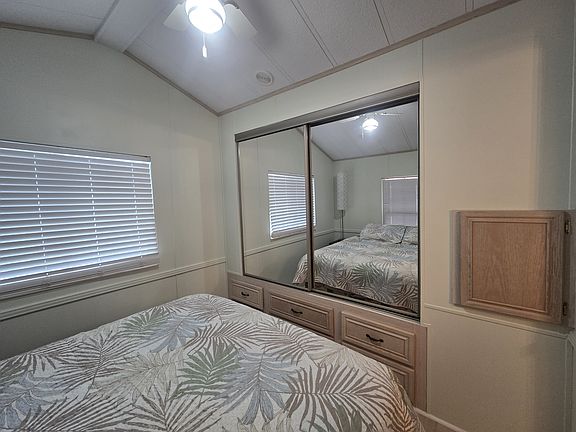 There is an attached screen room that overlooks a pond. The kitchen window faces the other pond for wildlife watching. There is a saltwater community pool, coin laundry machines, dock with large deck for viewing sunsets, boat slips and fish cleaning station all available for enjoyment. Golf cart friendly community. Restaurants with entertainment nearby. Lazy Days Resort has RV's and Park Models. Friendly community with social activities (pot luck dinners, game nights, etc.). Boat ramp nearby.