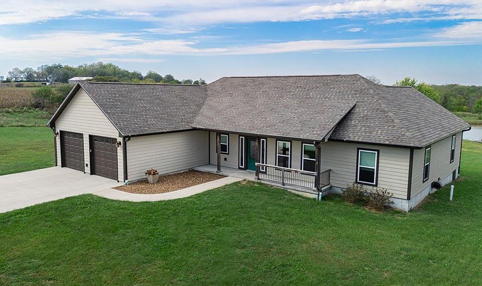 Beautiful ranch home on 25 acres just three years new. Cozy covered front porch that leads to an open living/dining/kitchen area all with gorgeous oak hardwood floors. There is oak hardwood flooring throughout the home except for the laundry, baths, family room, bedrooms 2 & 3. The kitchen features lots of large cabinets with pull out drawers in the lowers and in the pantry. The large kitchen island has two drawers with customized places for spices and silverware, and all countertops are granite. The high-level appliances are stainless steel and there is a true outside vented hood. This home also has a large walk in pantry next to the laundry. The laundry room has tile flooring, a sink, and quite a few cabinets. The office is located so you can see out the front of the home. The large master bathroom has his/her vanities with large cabinets, dual closets, and a large tub. The family room is in the rear of the home and overlooks the pond. The HVAC is central air with a 90% efficient propane furnace. The water heater is a power vented efficient. The large 60x40 outbuilding has concrete flooring, lighting, and very tall ceilings and side walls. It also includes a 1 bedroom finished apartment that includes the appliances. You can easily park a motor home in the outbuilding. The HVAC for the apartment does not work and seller will not warranty. The property is fenced and is ready for livestock. There are so many possibilities for this home and acreage and there are too many amenities to fit in this remarks block. Don't miss this opportunity to make this nearly new home your new home. Come take a look see.