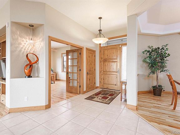 Welcome to this beautiful Colorado Home only minutes from downtown Castle Rock. The first thing you notice when entering the front door are the mountain views. Instantly you feel welcome and want to explore inside and out. ~ Wood floors, knotty alder cabinetry, SS appliances, and beautiful tile. Everything you want is within reach when owning this home. ~ A fabulous chef's kitchen featuring double ovens, large island, eat-in space, and an abundance of cabinets. It also opens to a large family room with a gas fireplace. The main level includes a generous office with built-ins, formal dining room, guest bath and guest bedroom. The main floor Master Suite is beautiful with mountain views, walk-in closet and 5-piece bath. ~ Entertainment: The spacious finished walk-out basement includes a gas fireplace surrounded by a stone wall. You will appreciate the wet-bar and rec area when guests visit. There are 2 additional bedrooms downstairs. One is currently set up for an in-home gym. ~The Lot: Wow! Incredible views from the 1-acre lot. Professionally landscaped with boulders, fence, trees, and gardens. ~Deck and Patio: Composite decking with shades and expansive mountain views. The patio below is covered with Dry-B-Lo and can be used year-round.
