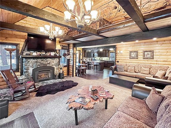 WOW!! MOVE RIGHT IN WITH THIS TURN KEY BEAUTY IN THE HEART OF WRIGHTWOOD WITH ALL THE DETAILS AND FINISHING TOUCHES A HOME OWNER COULD DREAM OF!!! Featuring 4 bedrooms, 2 1/2 baths and so many extras...outdoor deck off kitchen and dining room is perfect for entertaining. A/C, GAME ROOM, BONUS LOFT AND ROOM FOR THE RV! Inside features upgraded carpet with thick padding, a beautiful gas log insert with original native rock fireplace, vaulted ceilings and open beams in the living room. NO DIME HAS BEEN SPARED IN THE CREATION OF THIS MAJESTIC PROPERTY! FULLY FURNISHED...ALL TV'S, BEDS AND LOTS OF GREAT DECOR DETAILS CONVEY WITH SALE. THOUSANDS OF DOLLARS IN FURNISHINGS TO HELP YOU MOVE RIGHT IN! Main level features 3 beautifully decorated bedrooms, and a full bath WITH WROUGHT IRON, LOG CABIN SIDING INSIDE AND OUT, CUSTOM BEDROOM AND CLOSET DOORS, MATCHING CEILING FANS THROUGHOUT, MATCHING BEDDING, PILLOWS AND SO MUCH MORE! LIVE EDGE GRANITE COUNTERS THROUGHOUT, CUSTOM COPPER SINKS and durable wood look tile floors in kitchen and bathrooms. The view from the loft to downstairs is stunning! Up the stairs with wrought iron railing (don't miss the nook carved out for your weekend cigar) is the beautiful MASTER SUITE and BONUS LOFT, with lots of privacy and en suite bathroom that's your own slice of paradise. Custom finishes set this home apart...The kitchen features all STAINLESS STEEL APPLIANCES, lots of cupboard space and an open feel to dining area and living room. Built in microwave, farm house copper sink and plenty of room for the appointed chef to create the perfect meal no matter the season. Down the hall/PANTRY AREA (with oodles of cupboard space) to the INDOOR LAUNDRY AREA with door to rear deck, then down to the custom game room with WORKING SLOT MACHINES, MINI FRIDGE, NEON LIGHTS, SHUFFLE BOARD TABLE and dart board! THE FUN LITERALLY DOES NOT STOP!! CLOSE TO THE VILLAGE. THE LOCATION IS LITERALLY SECOND TO NONE. NO FLOOD ZONE, 3 BLOCKS FROM DOWNTOWN BUT IN THE BIRD STREETS, SO FAR ENOUGH AWAY FROM THE VILLAGE AS TO AVOID SNOW PLAYER ACTION IN THE WINTER BUT A 5 MINUTE WALK TO RESTAURANTS, THE COUNTRY CLUB AND ALL THE DOWNTOWN AREA HAS TO OFFER. Large lot...RV parking, room to relax and take in the stars, all located on Robin circle which is filled with soaring pines, majestic oaks and lots of great neighbors! TRULY A MUST SEE IN PICTURESQUE WRIGHTWOOD!!