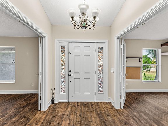 Purchase with peace of mind knowing this 2005 Holiday Builders home features a 2025 roof and 2018 A/C! This spacious 4-bedroom, 2-bathroom home offers a triple-split floor plan, formal dining room, den/office, and breakfast nook with bar seating. The kitchen boasts 42'' cabinets, granite countertops, and stainless-steel appliances. Relax on the screened porch while enjoying the tranquil sounds of the bamboo trees and koi pond waterfall. The fully fenced backyard provides privacy and safety. Conveniently located less than 2 miles to I-95 and just minutes to The Shoppes at Veranda Falls, featuring dining, shopping, and more. NY Mets spring training is only 11 miles away--don't wait to make this your new home!