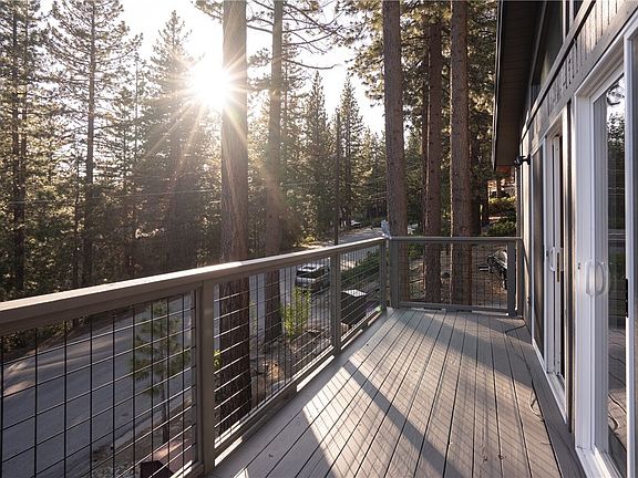 Pets allowed (pet deposits & rent negotiable). Enjoy lake views from the living area and deck in this extensively fully remodeled home. Features include a refreshed wood-burning fireplace with new tile surround, vaulted open-beam ceilings, and a filtered lake view deck overlooking a US Forest Service lot. Located at the end of a quiet cul-de-sac with extra parking, the home includes soundproofed common walls for added privacy. The kitchen boasts waterfall slab counters, new LED under cabinet lighting, newer appliances, a commercial pull-out faucet & tile flooring. Bathrooms offer LED mirrors and dimmable lighting, heavy glass shower door, updated vanities and fixtures. Newer carpet, paint, custom window coverings, washer/dryer included. Additional upgrades: gas forced-air heat, new dual-pane windows/sliders, electronic front door lock, attached garage w/ opener & keypad, Tesla charger being installed now, motion-sensor lighting, and more. Owner/agent.
