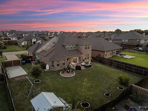 With its substantial size and a backyard that stretches to expansive, unobstructed grounds, this home presents an exceptional opportunity to enjoy all the space your family needs and a lifestyle that captures the feeling of country living, right in town. Built in 2019 with energy efficiency in mind, it delivers lasting comfort with practical savings. Located in Stoneridge, one of Hewitt’s most sought-after neighborhoods, the home offers quick access to I-35, making commuting to Dallas or Austin convenient for work or weekend trips. Inside, the main floor is anchored by a light-filled living and dining area, thoughtfully expanded to create an open, flowing space perfect for entertaining. Three of the bedrooms are downstairs, including a private in-law suite and a flexible bedroom ideal for an office. The isolated primary bedroom features bay windows that frame views of the backyard, filling the room with natural light, and a bathroom with separate vanities, two walk-in closets, a soaking tub, and a tiled shower. The kitchen blends form and function with granite countertops, a gas cooktop, walk-in pantry, and central island. Upstairs, two additional bedrooms share a full bath and a large living area that can flex as a game room, media space, or secondary family retreat. Ample storage throughout ensures every square foot is as functional as it is spacious. Outside, the oversized lot extends the gathering space with a concrete patio, stone fire pit area, and new landscaping. A peach tree, pear tree, and raised garden beds with drip irrigation bring extra enjoyment for weekend gardening. The fenced yard backs up to unimproved land, creating a rare sense of open space in town, while a storage shed and extra driveway pad add practicality. The home also includes solar panels, spray-foam insulation, energy-efficient windows, and a high-efficiency HVAC system, offering size, efficiency, and versatile living both indoors and out—a rare and valuable opportunity in Stoneridge.