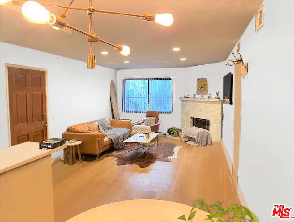 Charming condo located in a well-maintained, 12-unit complex on a quiet street. Light and bright living room features gleaming hardwood floors, a beautiful , fireplace and a private balcony. Updated kitchen and a breakfast area. 2 bedrooms, each with bathroom. 2 parking spaces in the gated, subterranean garage. On site laundry. Conveniently located in trendy Palms. Close to Sony, DT Culver City and Google, Amazon, Apple and HBO offices .Near the Expo Line, schools, shops, restaurants and freeway access. HOA includes EQ insurance, Trash, Water and Sewer .