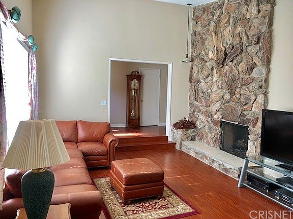 Striking, spacious home on quiet, tree-lined street in Chatsworth. Charming rose-lined walk way leads to well maintained, nearly 2600 sq ft, 5 br, 2.75 ba home that preserves its original mid-century appeal. Hardwd/laminate flrs lead from the entryway thru-out the open spaces. Sunken front rm/living rm features a large front window, eye-catching floor to ceiling stone fireplace making it a bright & cozy space. Separate family rm has the homeâs 2nd fireplace, a wet bar & dual pane sliding glass doors leading to the yard. Remodeled kit features updated cabs, granite counters, stainless appliances, a stunning Bertazzoni 6 burner range, & eat-in area w/ beadboard accents. Formal dining rm off the kitchen w/ built-in hardwd cabinets & contemporary light fixture. Tiled laundry/utility rm w/ sink & ample cabinets. 5 airy bedrms w/new plush carpet,, closets & large windows. 1 bed/ bath conveniently located on the other side of the house w/side entrance. Hall bath redone w/ custom tile, large, luxurious walk-in shower/ wheelchair accessible. Spacious master bedroom w/walk-in closet, en-suite bath w/double vanities & separate sitting area opening to back patio. Beautifully landscaped backyard w/covered patio, graded lawns & walkways. Pool & spa bordered by lush vegetation, making it a private, peaceful oasis. Centrally located near schools, shops, restaurants, parks & hiking trails. Close to new âThe Vineyardâ Porter Ranch Shopping Center coming soon.