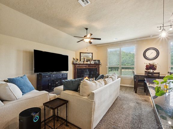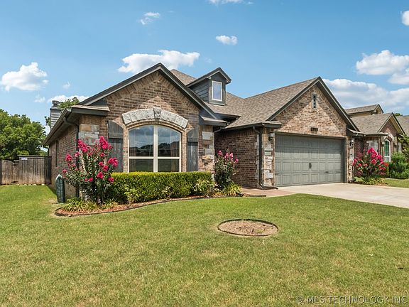 Welcome Home to this charming zero lot line ranch home located in the highly sought after Augusta Greens subdivision within the Jenks School District. This meticulously maintained home boast plantation shutters, vaulted ceilings, sprinkler system, large open rooms, and a storm shelter for added peace of mind. The Augusta Greens community offers an array of amenities including walking trails, putting greens, club house/workout facility, maintain front and back yards, and yard treatments. You do not want to miss this opportunity to enjoy elegant living in a vibrant low maintenance community!