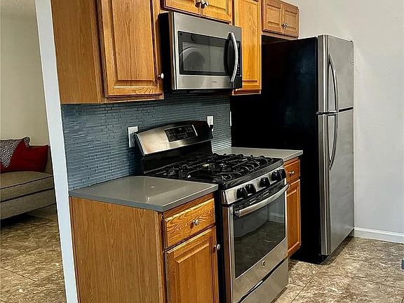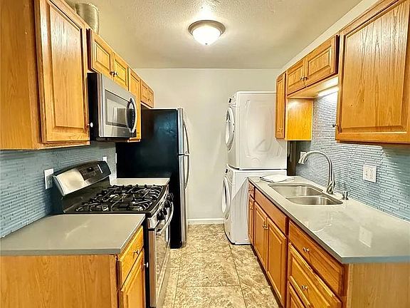 - Description: You Will Love Your New Kitchen Boasting Stainless Steel Appliances To Include A Gas Stove Along With Lovely Tile Backsplash Accents And Solid Surface Countertops; The Laundry Facilities Are Also In The Kitchen.
