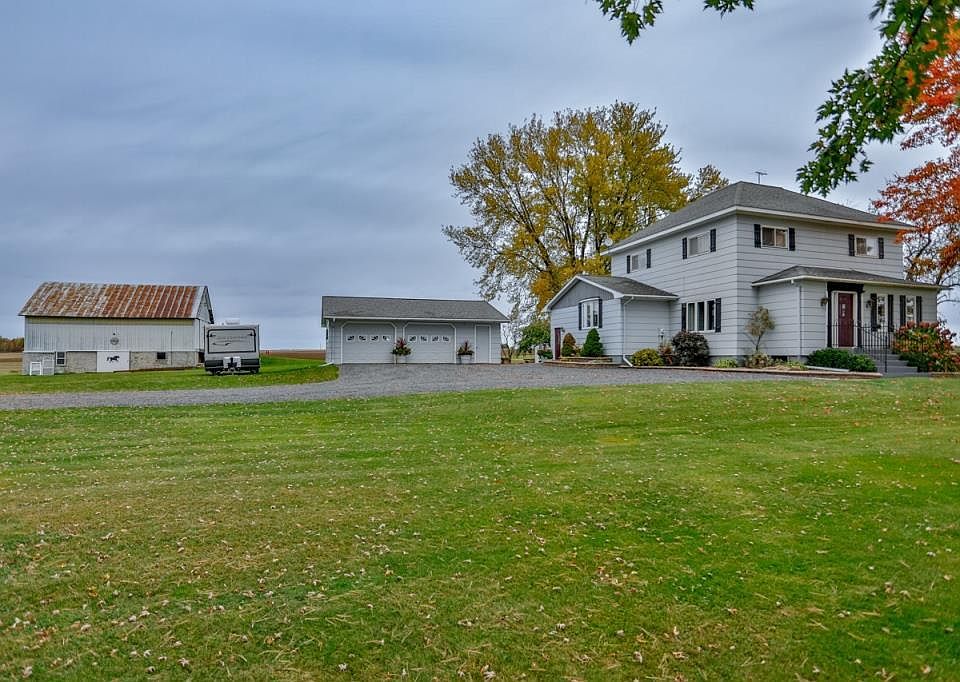 This charming 4-bedroom, 2-bath home sits on a spacious 1.80-acre lot just five miles from Colby and only 30 minutes from Rib Mountain. Originally built in the early 1900s, the home was fully remodeled in the 1980s, including updated electrical and plumbing, blending classic farmhouse character with modern comforts. Inside, you'll find a generous layout starting with a large front entryway, coat closet, and a spacious formal living room. The expansive dining room features a built-in coffee bar and hutch with decorative shelving and lighting, perfect for entertaining. The farm-style kitchen is a standout, with white cabinetry, a large center island, a brick hearth surrounding the stove, large pantry, built-in desk, and included appliances?refrigerator, microwave, cooktop, oven, dishwasher, and disposal. The main level also offers a versatile multi-purpose room with a laundry area, complete with included washer and dryer, and look-through to the kitchen area. Upstairs, there are 4 bedrooms, including one that does not have a closet and offers pull-down attic access, making it ideal f,The home features a 200-amp electrical panel, a York LP forced-air furnace (installed in 2015), with a new heat exchanger added in October 2024, central A/C, an LP hot water heater, water softener, and 5,600-gallon holding tank capacity. The exterior is equally impressive, with an asphalt roof installed in 2009, a detached 24x32 garage, and a 28x45 shed with a stone foundation, upper wooden floor - equipped with electricity. Plus a storage shed / playhouse - great additional storage for lawn equipment or patio furniture. The beautifully landscaped yard includes a fire pit area, raised garden beds, three apple trees, two blueberry bushes, and more. A spacious deck with a ramp to the back entrance adds accessibility and charm. Located about a mile from Cherokee Park, you'll enjoy easy access to walking trails and the Big Eau Pleine River. This well-maintained home offers the peace of country life with modern updates and a convenient location. Schedule your showing today!