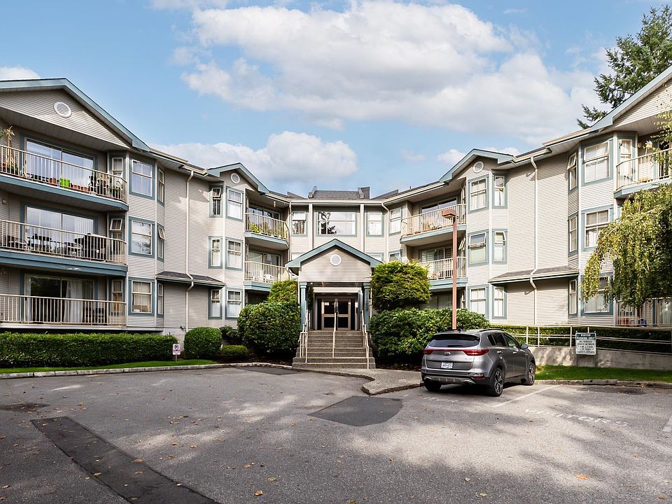 Nicely renovated & well maintained 2 bed, 2 bath, 1120 sq ft corner unit. A desirable unit in the building surrounded by trees providing a tranquil private quiet setting. Spacious rooms & updated durable vinyl floors throughout. Primary bedroom includes walk-in closet & full ensuite bathroom - tub/shower. Updated kitchen w/ breakfast bar and open to the dining & living rooms. Not all units in the building have a gas fireplace but this one does! Gas included in the reasonable strata fees. Laundry room is a great space for storage. Hot water tank replaced in Feb 2023. 1 parking stall, visitor parking & storage locker is conveniently located on the same floor as the unit. Pet friendly. Across from Forsyth Rd Elementary, close to Forsyth Park/dog park, skytrain, Central City & more!
