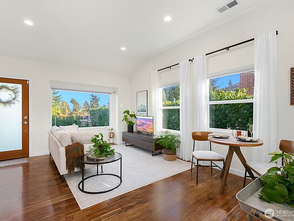 Discover this stunning Greenwood rambler, thoughtfully designed to blend comfort w/ timeless style. Remodeled in 2017, the open layout features a light-filled living room w/ vaulted ceilings, dining area & chef-inspired kitchen w/ quartz counters — perfect for everyday living & entertaining. Updates include new roof, windows, siding, flooring, baths, electrical & plumbing, offering true move-in readiness. Outside, the expansive 6,337 sqft fenced lot with patio & courtyard creates a private retreat. A detached garage adds EV charging & future DADU potential. Located on a designated “Healthy Street,” neighbors enjoy traffic-calmed living, play streets, & easy access to the Interurban Trail, Carkeek Park, dining, shopping, transit & freeways.
