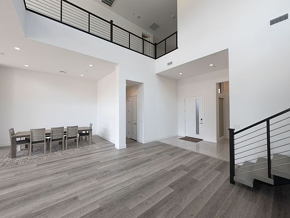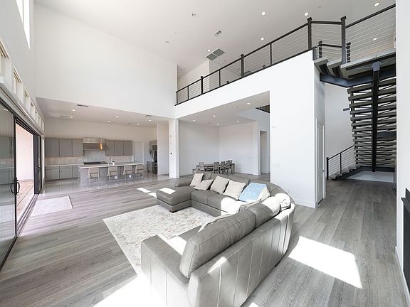 Welcome to 10743 Patina Hills, a luxury retreat in the gated community of Mesa Ridge in Summerlin. This 5 bedroom, 6 bath property is sophisticated and cozy. The main level features two junior suites that provide convenience and privacy for guests or can be used as a home office space. The home comes with a striking spine staircase with concrete treads. Upstairs, the master bedroom features a balcony with ribbon views,. Two additional junior suites and a loft with mountain views complete this cozy space. Please contact a realtor to view the property in person.