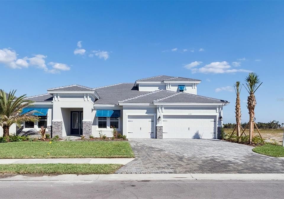 One or more photo(s) has been virtually staged. Cedar Key II - This Cedar Key II is ready for move in! This home features Maddox Painted Harbor cabinets, Frost Whte MSI Quartz counter tops, Home Nutmeg LVP flooring, and more. Think of this home as your finest accessory, a statement piece with a brilliant, breezy design that simply flows from the moment you enter the foyer into the expansive open spaces. It holds itself with a certain elegance, showcased by the impressive 12 foot ceilings that rise in the formal dining room, grand room, and gourmet kitchen, making every moment here feel strikingly light and open. The foundation is built on quality, featuring the rich depth of Maddox Painted Harbor cabinets, the sleek brilliance of Frost Whte MSI Quartz countertops, and the warm, grounding texture of Home Nutmeg LVP flooring. Downstairs, it offers a truly lavish Owner's Retreat, complete with a beautiful double door entry, two spacious walk in closets for all your essentials, and a luxurious Owner's Bath designed for your ultimate relaxation. It has room for everything and everyone, with ample secondary bedrooms and a generously sized laundry room. The style extends outdoors to an expansive covered lanai, and it even provides a versatile upstairs space, a bonus room, bedroom, and bath, perfectly contained for guests or your hobbies. This home is waiting to be filled with your life, your style, and your dreams. Let it be the foundation of your finest moments. Listing Price amount for this Pending Sale includes Design and Structural Options.