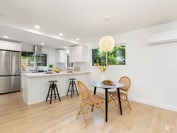 Welcome home to your urban oasis in a fabulous location! Fully refreshed and move in ready for it's next owner. Brand new flooring, roof, windows, paint, and kitchen, this home has it all! The open concept makes for a great entertaining space and helps this space live large. Cooking is a breeze in this brand new kitchen with beautiful quartz counters, ss appliances, and a convenient peninsula providing ample seating. Relax in your great room with a brand new mini-split AC for those hot summer days. Step outside to a large yard filled with big beautiful trees providing both shade and privacy. The shed provides extra storage space as well. Downtown White Center is just a few blocks away with restaurants, coffee shops, and more!