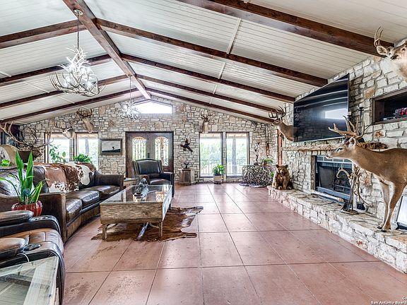 Luxury Ranch Retreat just Minutes from San Antonio!! This property offers a total of 31.5 acres and 2 homes, perfect for multi-family living or large-scale entertaining! Discover an ideal blend of rustic luxury, function, and outdoor living with this breathtaking high-fenced property. Designed for both comfort and utility, this ranch delivers peaceful seclusion without sacrificing convenience. This property is like its own private oasis! *At the heart of the property sits a stunning 4,215 sq. ft. rustic ranch-style home featuring a wraparound porch, sparkling pool, and sweeping country views. Inside, you'll find: 3 spacious bedrooms & 3 full baths Office/multi-use room 2 living areas with soaring ceilings 3 impressive wood-burning fireplaces Unique stone flooring Safe room * 2nd residence features an impressive 3/2.5 1948 sf two-story rock home, which not only boasts aesthetic charm but also speaks to durability and timelessness. 3 beds / 2.5 baths Fireplace Main floor Master suite with double vanities, his & her closets Custom kitchen cabinets Plus enjoy the outdoors at its absolutley amaing outdoor entainment area with firplace, bar, sink, ice make, refrigerator... Property Highlights: High-fenced with automatic gated entrance Abundant wildlife, white-tailed deer, turkey, dove, ducks, cranes & more Deer/livestock pens, Large well-fed stocked pond with pier, plus a 2nd pond, Two water wells Coastal hay field, Three-stall horse/livestock barn with covered equipment storage. Additional open barn with stalls, Outbuilding with walk-in cooler, walk-in freezer & stainless steel countertops, Storage building & 2-car carport, Fenced yard & in-ground pool. Endless Possibilities, whether you envision a private retreat, horse or livestock operation, 4-H projects, or a turnkey ranch with income potential, this property has it all. The combination of wildlife habitat, ranch infrastructure, and country living makes it ideal as a full-time residence, weekend getaway, or even a corporate retreat. Peaceful, private, and move-in ready-this ranch delivers the very best of country living just minutes from San Antonio!
