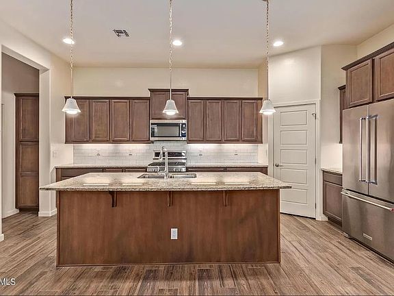 Single-level home situated in the beautiful, desirable Mulberry community offering a range of amenities. Hollywood-style artificial turf driveway, Craftsman stone elevation, and front porch welcome you to this 2435 square foot, five-bedroom, three FULL bathrooms, built-in 2018 home. Modern upgrades include wood plank tile flooring, staggered cabinets, and recessed and pendant lighting. Gourmet kitchen with granite counters, subway tile backsplash, upgraded KitchenAid stainless steel appliances, including a natural gas stove and 3-door refrigerator. Large master suite with separate shower & JETTED tub, dual sinks, walk-in closet, and a privacy room for commode. Several handicap-accessible features throughout the home, including grab bars, oversized doorways, and ramps at all exits. Extensive paver back patio, walkways, and driveway. Excellent community features include two swimming pools, a clubhouse, a BBQ area, expansive lawns and greenbelts, gazebos, multiple pickleball courts, multiple basketball courts, and a workout facility. Close to freeways and shopping.