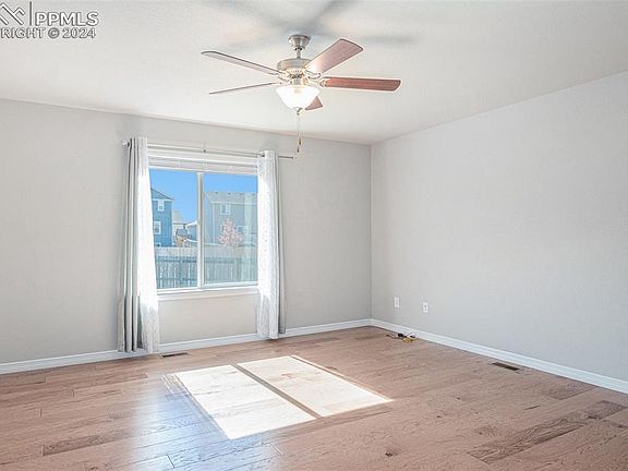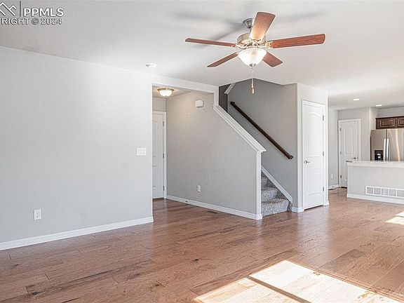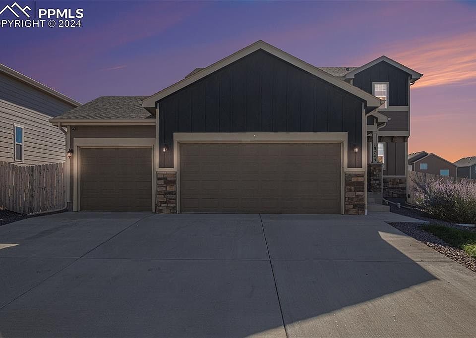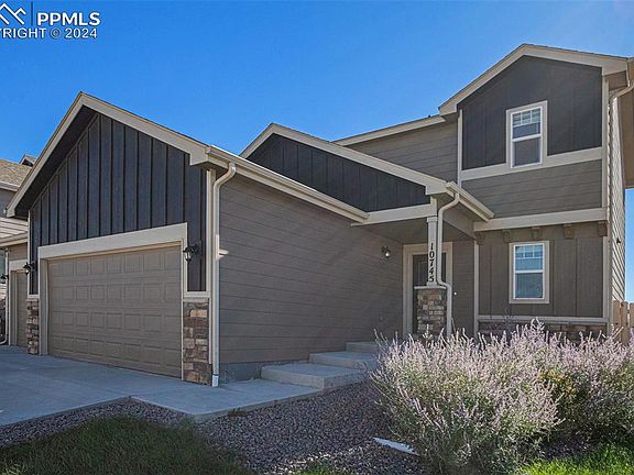 Welcome to this breathtaking two-story home in the highly sought-after Lorson Ranch community! Built in 2020, this modern masterpiece boasts 4 bedrooms, 3.5 beautifully designed bathrooms, a fully finished basement, and central air perfect for family gatherings or hosting guests. From the moment you step through the front door, you'll be greeted by the seamless flow of the open-concept main level, where hardwood laminate flooring adds warmth and style throughout. The sun-drenched living room invites you to relax and enjoy cozy evenings, while the adjoining kitchen promises to be the heart of the home. The kitchen features a spacious island perfect for meal prep or casual dining, a striking tiled backsplash, and abundant cabinetry to accommodate all your storage needs. Imagine preparing your favorite meals in this well-appointed space, with ample room for entertaining and creating lasting memories. The adjacent dining area offers the perfect setting for family dinners and overlooks the fully fenced backyard. As you make your way upstairs, discover a true sanctuary in the expansive primary suite. This private retreat features a beautiful en-suite bathroom with a soaking tub where you can unwind after a long day, dual sinks for convenience, a tiled shower, and a generously sized walk-in closet. The additional upstairs bedrooms are spacious and bright, perfect for family members, guests, or even a home office. The fully finished basement adds incredible flexibility to this home, providing a versatile recreation room that can be transformed to fit your lifestyle. An additional bedroom and full bathroom complete the lower level, ensuring guests have their own private space. This home also features a 3-car attached garage. The corner lot not only provides additional privacy but also showcases spectacular mountain views. Perfectly situated near military bases, schools, parks, and recreational areas, this home offers both convenience and a strong sense of community.