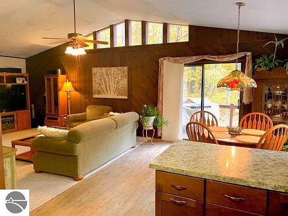You can have your own piece of Northern Michigan paradise in this charming ranch home surrounded by beautiful hardwoods. Step out the back porch to relax and listen to the birds or take a short walk down the road and enjoy all that beautiful Green Lake has to offer. A 24x40 Pole Barn and a fire pit are just a few of the great things this spacious yard has to offer. Set back in the woods you will have plenty of room to play or just relax while enjoying the colorful hardwoods and the privacy they provide. Listing agent is related to seller.