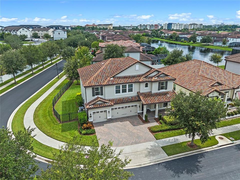 Nestled within the exclusive gated community of Ruby Lake, this stunning corner-lot home offers the perfect blend of modern luxury and energy efficiency. Featuring 5 bedrooms, 4 bathrooms, and 3273 square feet of living space, this residence combines elegance with everyday comfort. This convenient layout begins with a formal dining room that connects seamlessly to the gourmet kitchen through a spacious butler’s pantry, complete with a built-in wine fridge. At the heart of the home, the open-concept kitchen and great room are designed for both daily living and entertaining, showcasing ceiling-height cabinetry, quartz countertops, a stylish backsplash, and GE® stainless steel appliances—including a built-in microwave and wall oven, natural gas cooktop with vented hood, and more. A private guest suite with a full bath completes the first floor, where elegant porcelain tile flows throughout the main living areas. Upstairs, you will find a spacious primary bedroom, a generous loft, laundry room, and three additional bedrooms with luxury vinyl flooring and three full baths. The owner’s suite is a private retreat with serene rear-facing windows, a spa-inspired bath featuring dual vanities, oversized shower with semi-frameless enclosure, and a spacious walk-in closet. Another upstairs bedroom also includes its own en-suite bath.Outdoors, enjoy a spacious fenced backyard with plenty of room to entertain or play. Step outside and take in the partial pond view. A 3-car garage provides ample space for parking and storage. Water softener and tankless water heater. Ruby Lake offers exceptional resort-style amenities, including a private boat dock, community pool with splash pad, clubhouse with fitness center, tennis and pickleball courts, fire pit, and more. Ideally located near A-rated schools, premium shopping, top dining, and just minutes from major highways, community parks, and world-renowned attractions—Walt Disney World and Universal Studios are less than 20 minutes away. Experience the very best of Central Florida living—schedule your private tour today!