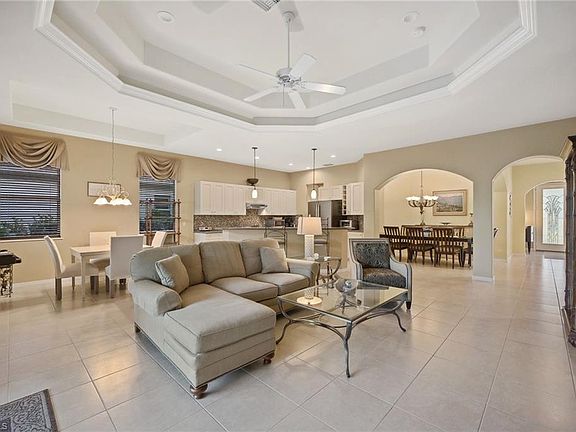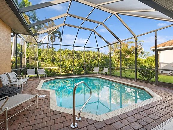 Just Listed for the 2026 Season. Spacious 2,165 sq. ft. single-family home with an open floor plan and a heated pool within a screened lanai on a private, lushly landscaped lot. Great for entertaining, this residence offers 3 bedrooms, 2 baths, and a den with pool table and bar. Interior features include 10 ft. decorative tray ceilings, lead-glass front door, blinds, plantation shutters, and two 250-gallon propane tanks serving the stainless steel gas range, grill, and tankless water heater and solar panels for energy efficiency. The kitchen includes a breakfast nook and bar seating, complemented by a separate formal dining area. Outdoor living features a covered patio and summer kitchen with a newer stainless steel gas grill. The primary suite offers landscape views, an oversized closet, and a bath with two vanities, soaking tub, and large walk-in shower with frameless glass enclosure. Located in Longshore Lake, known for its 88-acre lake, USTA tennis program with lighted Har-Tru courts, fitness center, lakeside community pool, playground, fishing pier, and clubhouse with restaurant. Public golf courses and beautiful beaches nearby! Convenient North Naples location near I-75, medical facilities, shopping, dining, Mercato, and close to Seed to Table.