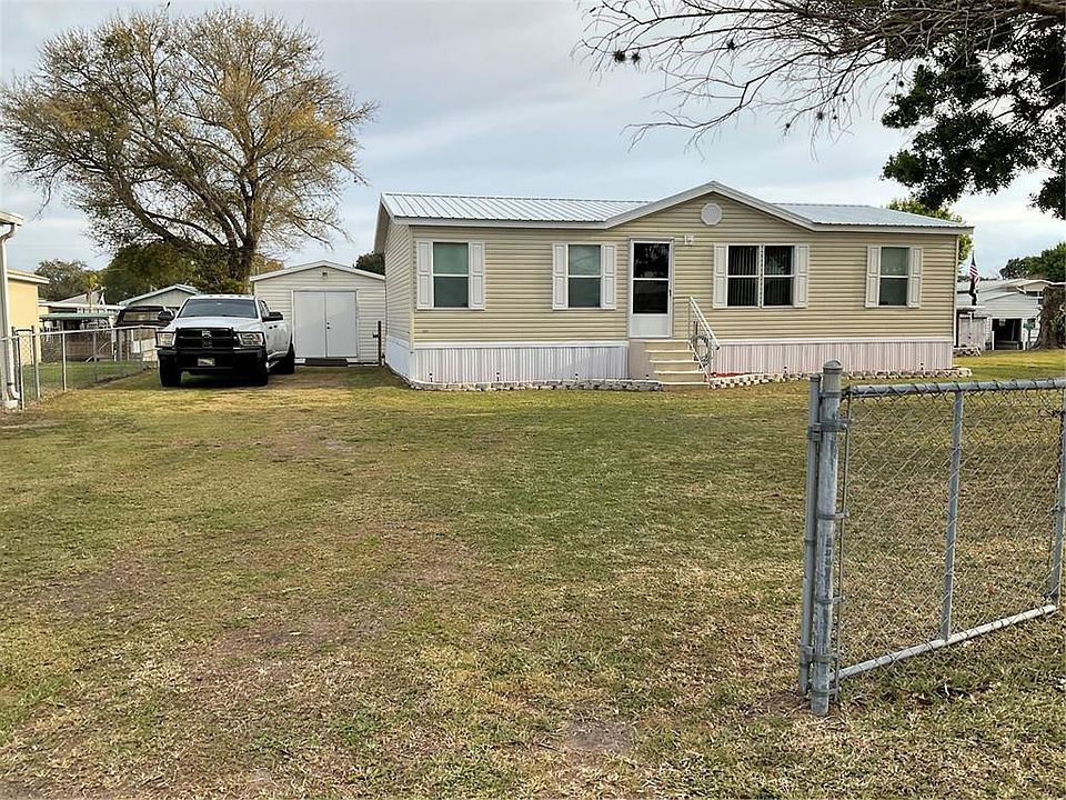 Buck Head Ridge- Lake Okeechobee Access - Furnished 3-bedroom 2 bath Canal front 2004 Double wide mobile home -Partially fenced yard with gated entrance- cathedral ceilings- split bedrooms-spacious master bedroom with large walk-in closet, double sink, garden tub & separate shower in master bathroom-kitchen & dining combination- inside laundry-plex plumbing -irrigation system off canal-2017 metal roof -New Central Heat & Air 2023- Survey available-large storage building completely finished inside a great workshop -metal shed for lawn equipment. Screen room overlooking canal- Seawall needs to be replaced estimate for replacement available call today for more information! all measurements approximate.