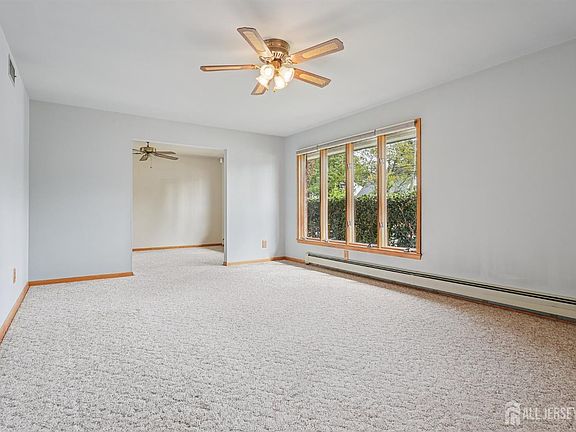 One-floor living at its best! Move right into this meticulously maintained 3 Bedroom, 2 Full Bath brick Ranch situated on a 100 x 100 lot in Parlin - only the second owner ! Enter via the Foyer into a spacious Living Room and Dining Room, leading to a large Eat-in Kitchen with a separate Dining Area and access to the backyard. The en suite Primary Bedroom offers a walkin closet, while the second bedroom also features a walkin closet. Additional highlights include an ADT Alarm System, hardwood floors & ceiling fans throughout, central air (2019), hot water heater (2022), roof (2004), boiler (2010), and central vacuum. A convenient Laundry Room includes a washer, dryer, slop sink, & inside access to the freshly painted oversized 1-Car Garage w/ garage door opener. The full-length unfinished Basement provides a sump pump, French drains, and plenty of space for storage or future customization for a Family Room, Recreation Room, Workshop or work-from-home space. Outside, enjoy the beautifully maintained, fenced-in backyard with a patio, 2 spacious storage sheds, and front and back in-ground sprinkler systems. The extra-long driveway accommodates up to 9 cars, completing this move-in-ready home that shows true pride of ownership. Located close to major highways, shopping, and NYC bus, train, & ferry transportation. Don't miss out on the opportunity to own a home that offers both comfort & convenience in a prime location !