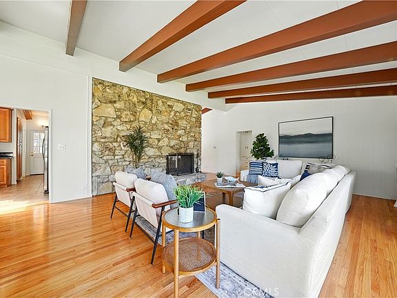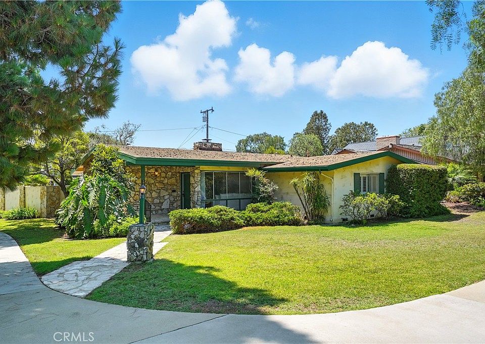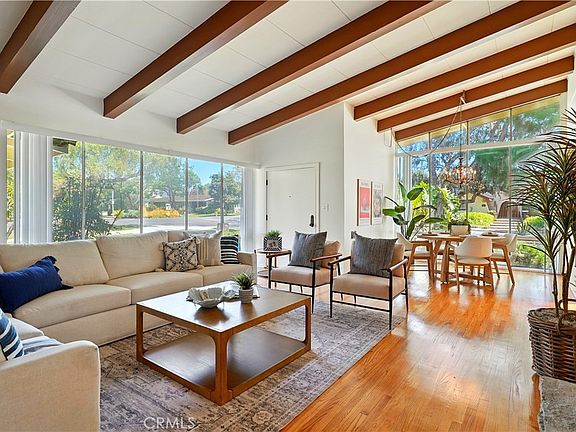 Welcome to this one-story ranch in sought after Park Estates offering 3 bedrooms, 3 bathrooms, and 2,131 square feet of living space complete with a 3-car garage on an 8,990-square-foot corner lot. Mid-century details greet you at the door including vaulted ceilings with wood-accented beams and built-in bookcases. A striking double-sided stone fireplace and dramatic floor-to-ceiling windows fill the open-concept living and dining areas with natural light. The remodeled kitchen features a well-designed layout, a skylight, and space for a coffee bar. A nearby three-quarter bathroom with shower and indoor laundry hookups add convenience. The double-sided fireplace connects the living area to an inviting family room featuring a wall of sliding glass doors that lead to the backyard. For added privacy, a pocket door separates the common areas from the bedrooms. The primary suite offers dual sliding-door closets, a charming “pretty in pink” ensuite bath, and direct access to the patio. Two large bedrooms down the hall share a full bathroom with a period-style tub, dual-sink vanity, and greenhouse window, while showcasing vaulted, beamed ceilings and built-in closets. Outdoors, enjoy a backyard with mature trees, a raised patio seating area, and the detached 3-car garage with an additional laundry hookup. With its thoughtful floor plan, architectural charm, and abundant natural light, this home is a true gem—don’t miss your chance to bring your vision to life.