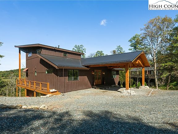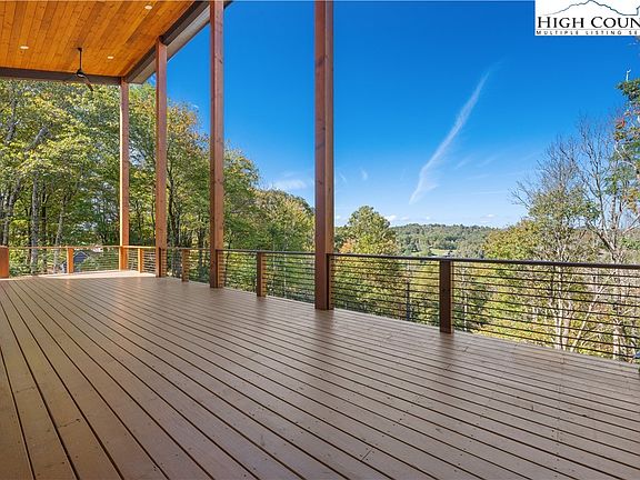 1075 Center Count Drive: Discover this tranquil NEW CONSTRUCTION Spa Home with the perfect mix of Mountain & Modern, nestled in a central & desirable location - just off the Blue Ridge Parkway, 8 min to Blowing Rock (Blowing Rock fire and schools districts!) and 12 min to Boone! Great for a full time residence, mountain vacation home, or investment property (short term rentals allowed)! This 3 Bedroom 4.5 bath home features a soaring great room with wall of windows, framing the view. Walk out to an expansive, 15x45 foot covered deck stretching 20+ feet high and allowing the entertaining space to flow indoors to out! An open floor plan brings together the kitchen, dining, and living spaces with a modern-style wood stove serving alongside the views as a focal point of the space. Additionally at the entry level you will find the Primary Suite with ensuite and dual closets as well as a 2nd Suite with bedroom and full bath- making it a great layout for one level living, with all the main features on the Walk In Level. Extra space for guests, alternate primary, or home office with a view, is a 3rd Bedroom on the second floor with ensuite. While abundant natural light, mature trees, and wood & stone elements give a back-to-nature feel, a Personal Spa with 2nd deck, sauna, steam room, changing area and bathroom turn this property into a true mountain oasis. The unfinished walkout lower level offers much potential including GREAT storage space, or the possibility to add an additional 1200+ sqft of living and or entertaining space in the future. Amenities: Large windows, vaulted ceilings, 1st floor laundry, hardwood hickory floors, open concept, spacious driveway for easily parking 3+ cars with porte cochere, new independent well and septic, gas stove, dryer and instant hot water, high speed internet. This is a sought after central High Country location in Crestview Estates with a low ANNUAL POA of only $300 and short-term rentals permitted. Home was built under an owner builder exemption, owner/builder is now a licensed NCGC.
