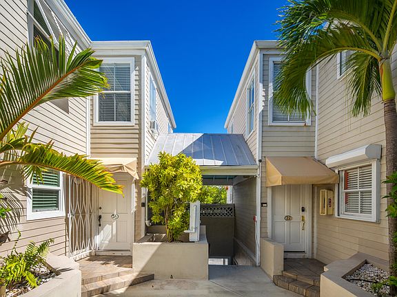 Attention Island Investors meet - Duval Hideaway. Tucked away just footsteps off of Duval street this hidden oasis offers peace and quiet with the luxury of being downtown. Sip and swim your troubles away at the community rooftop pool where you will be able to enjoy viewing local parades with the setting island sun as the backdrop. Entertaining friends and family will be a breeze with the open floor plan and large patio area. Upstairs you will find two bedrooms with the master boasting a private balcony both with ensuite updated bathrooms. Nestled in a gated community providing secure parking located next to the stairs that lead the way to your private unit. The unit can be sold turnkey as all of the original art and furnishings are for sale. Excellent potential to be a vacation rental!