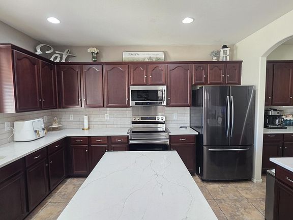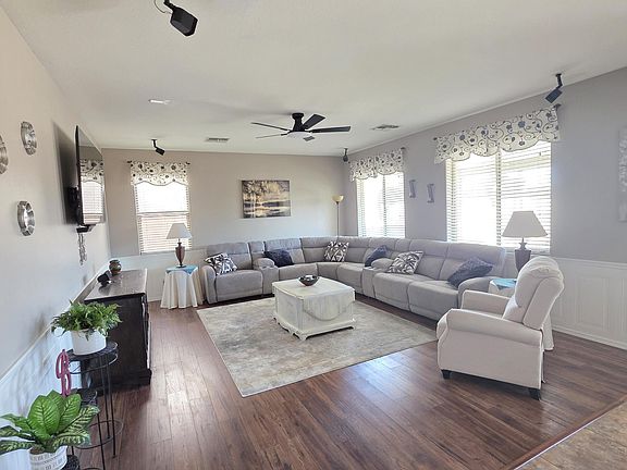 Stunning 5 bed 3 bath 3,530 sq ft Family Home with Resort-Style Backyard & Community Amenities! Step into your private oasis featuring a refreshing family-sized pool with a soothing waterfall, beautifully framed by pavers and lush synthetic grass. The expansive covered patio runs the full length of the home, perfect for outdoor entertaining or relaxing evenings. Enjoy unparalleled privacy backing to one of Johnson Ranch's many scenic community greenbelts, with no neighbors behind. Inside, this thoughtfully designed home offers spacious living for the entire family. A large guest bedroom downstairs is ideal for visitors or extended family, while the master suite boasts a cozy sitting room, an upgraded closet system, and a beautifully updated master shower for your daily retreat. Entertain in style with a front sitting room, formal dining area, and a generous family room. The chef's kitchen is a showstopper, featuring a center island, quartz countertops, and a walk-in butler's pantry complete with a convenient coffee bar. A versatile loft space adds to the flexible living options. Two new AC units and solar panels provide huge savings on utilities, combining comfort with efficiency. Located in the coveted Johnson Ranch community, enjoy access to an award-winning 18-hole golf course, multiple community pools, and versatile sports courts including tennis, pickleball, basketball, sand volleyball, and more. Over 300 acres of greenbelt space, parks, playgrounds, a catch-and-release fishing lake, and sports fields for softball and soccer make this a perfect place for active, family-friendly living. Don't miss this exceptional opportunity to live in a home and community designed for comfort, luxury, and fun!
