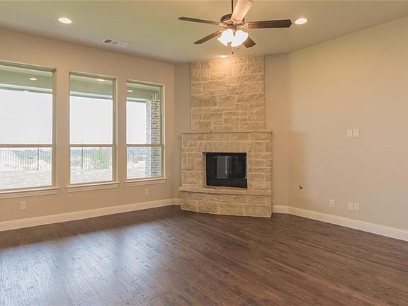 MLS# 13684122 - Built by Highland Homes - CONST. COMPLETED Aug 16 ~ Gorgeous home on greenbelt lot! Large kitchen offers granite counter tops, custom cabinetry, butlers pantry and opens to family room with hardwood floors and stone fireplace! The first floor offers a spacious master suite plus a private guest suite. Upstairs features an oversized game room with powder bath, media room, plus two bedrooms, a jack and jill bath..