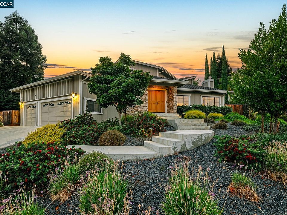 Beautiful sprawling 4br + office/3ba home situated on a corner 0.3-acre lot. The main level features a formal living room with vaulted ceilings and fireplace, a formal dining room, and a spacious open-concept family room. A light-filled large kitchen opens to an attached breakfast nook, with large bay windows overlooking backyard fruit trees and a large walk-in pantry. The main floor also has 1 bedroom, a full bath, an office, and laundry room. On the second floor, the primary bedroom features an en-suite bathroom with new tile floor, and a large walk-in closet. Two spacious sunny bedrooms also have large closets and updated bathroom. The property has been updated with new central heat and air and water heater and new interior and exterior paint. There is ample space in the three-car garage with storage cabinets and shelves (768 sq. ft.). Central vacuum. The front and back yards of this wonderful property were professionally landscaped (cost $120,000) and meticulously maintained. The backyard features a covered patio perfect for entertaining, large grass area and fruit trees. Minutes to Concord and Pleasant Hill BART, Lime Ridge Open Space and hiking trails, Orchards @ Walnut Creek shopping center, De La Salle & Carondelet high school, and park. Seller is the original owner!