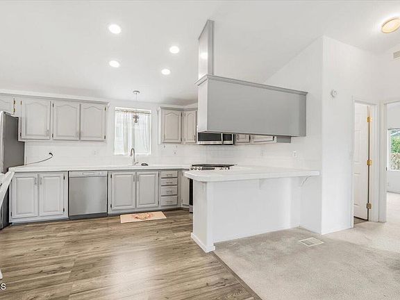 Modern three-bedroom, two-bath manufactured home situated in the scenic Ojai Valley. The property has been recently repainted and features updated flooring and an open floor plan. Kitchen amenities include a stainless steel refrigerator, stove, dishwasher, and microwave. The residence also offers an in-unit laundry area with shelving and pantry cabinetry, along with new patio railings and steps. Located within the Del Frasierra Park 55+ community, residents have access to a clubhouse, a pool table, a swimming pool, and additional amenities. This home is move-in ready.